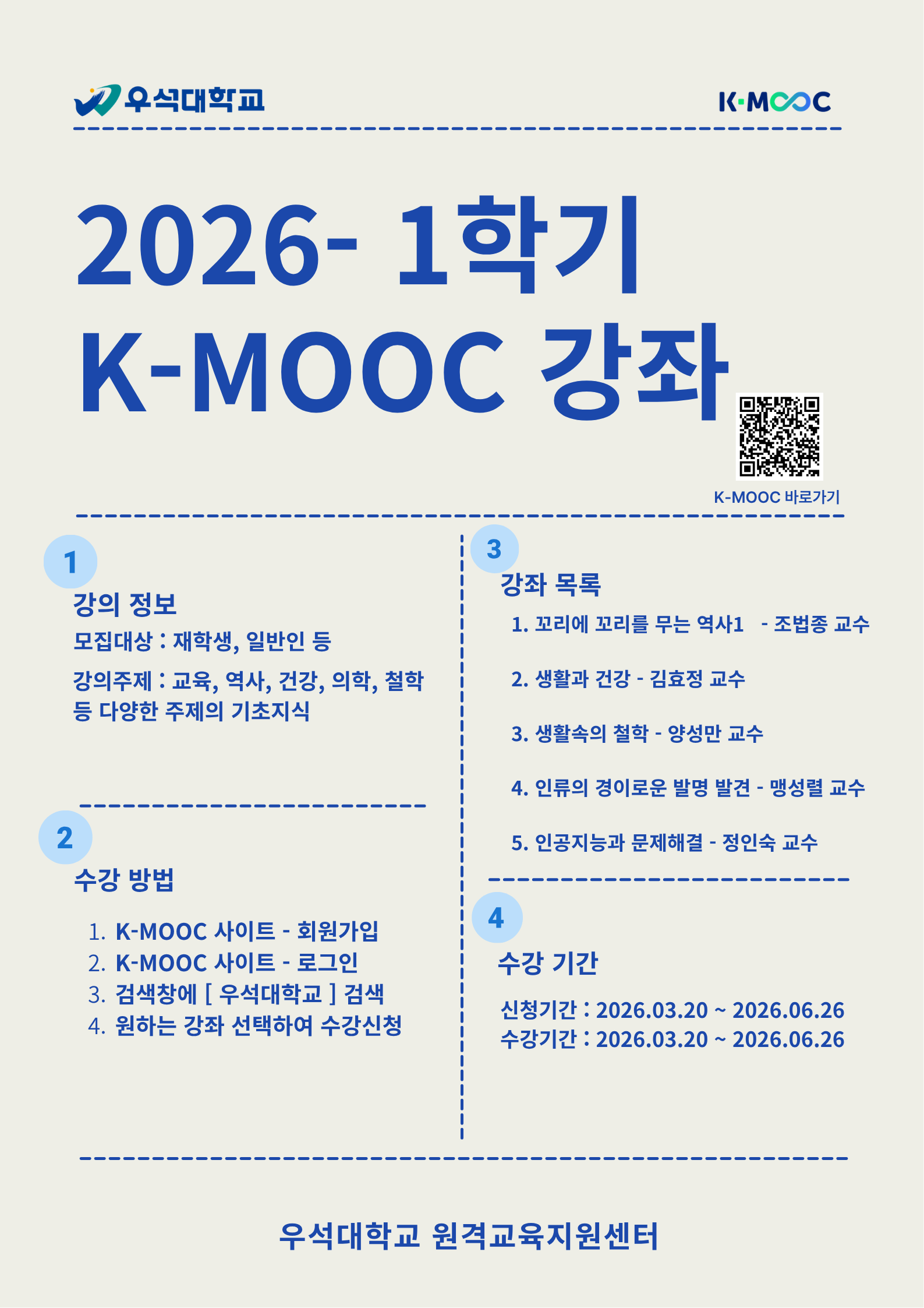 우석대학교 2026년 1학기 K-MOOC 강좌 수강 안내