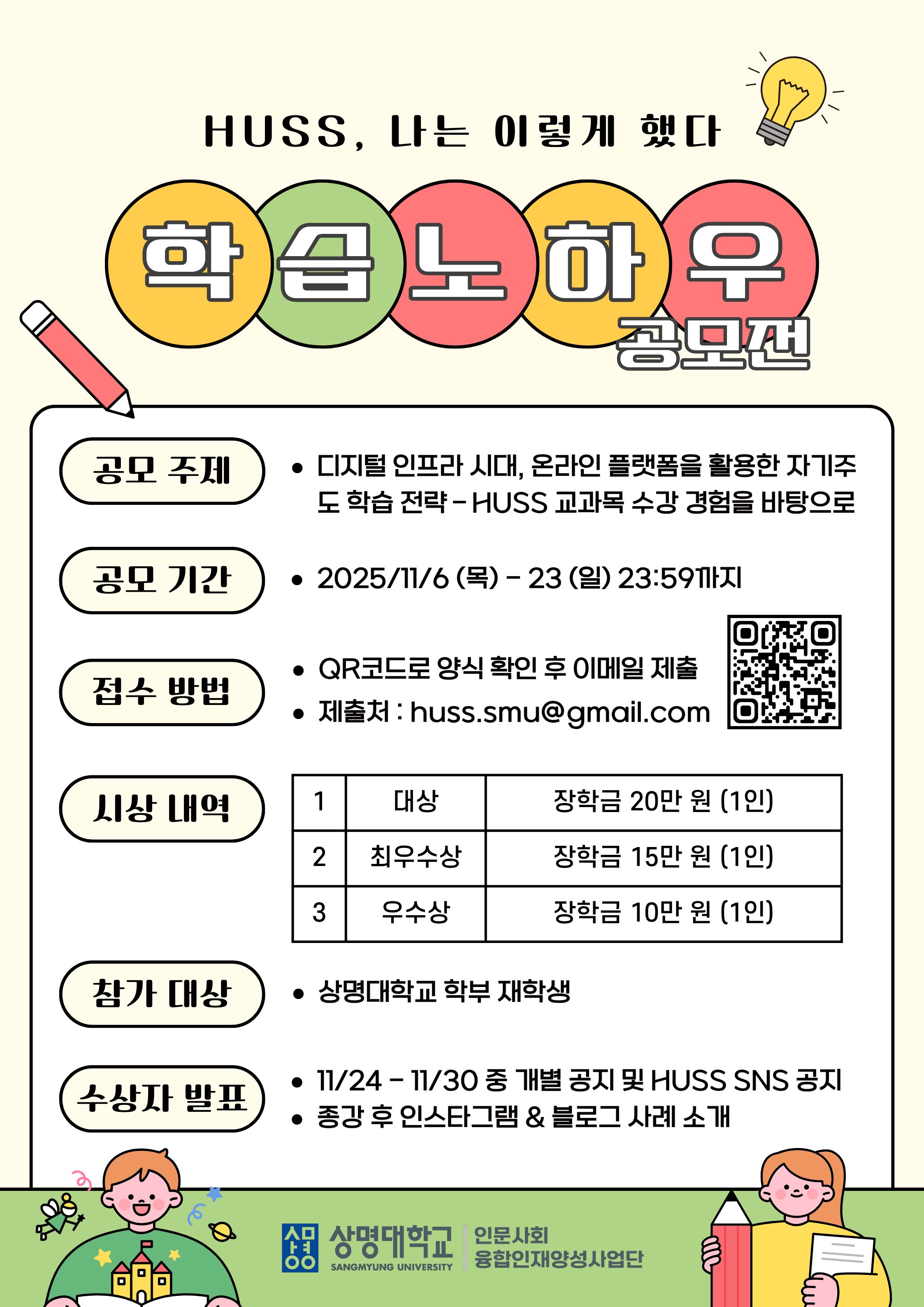 상명 [비교과] [HUSS 인문사회융합인재양성사업단] 'HUSS, 나는 이렇게 했다!: 나만의 학습 노하우 공모전' 안내 -