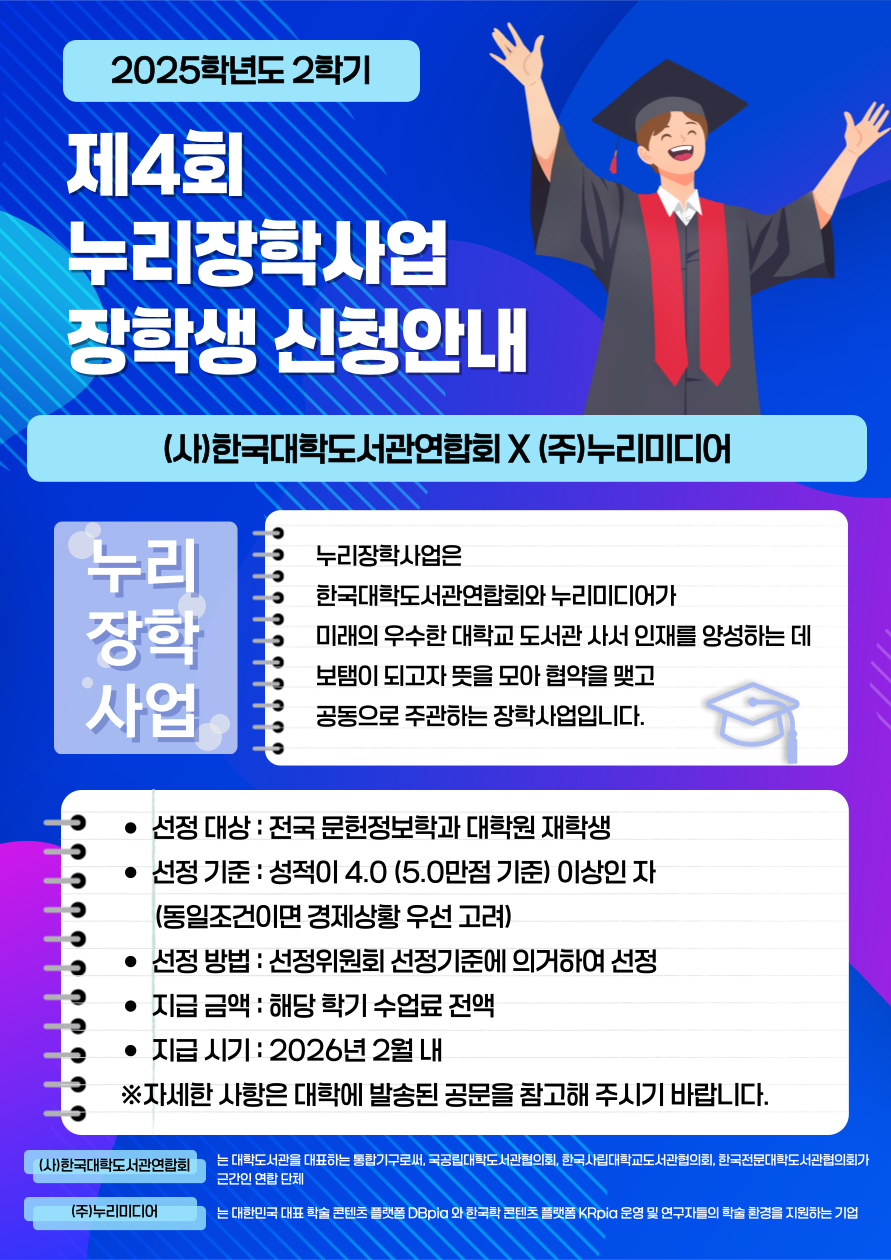 [일반대학원] 2025년 2학기(제4차) 누리장학사업 장학생 신청 안내