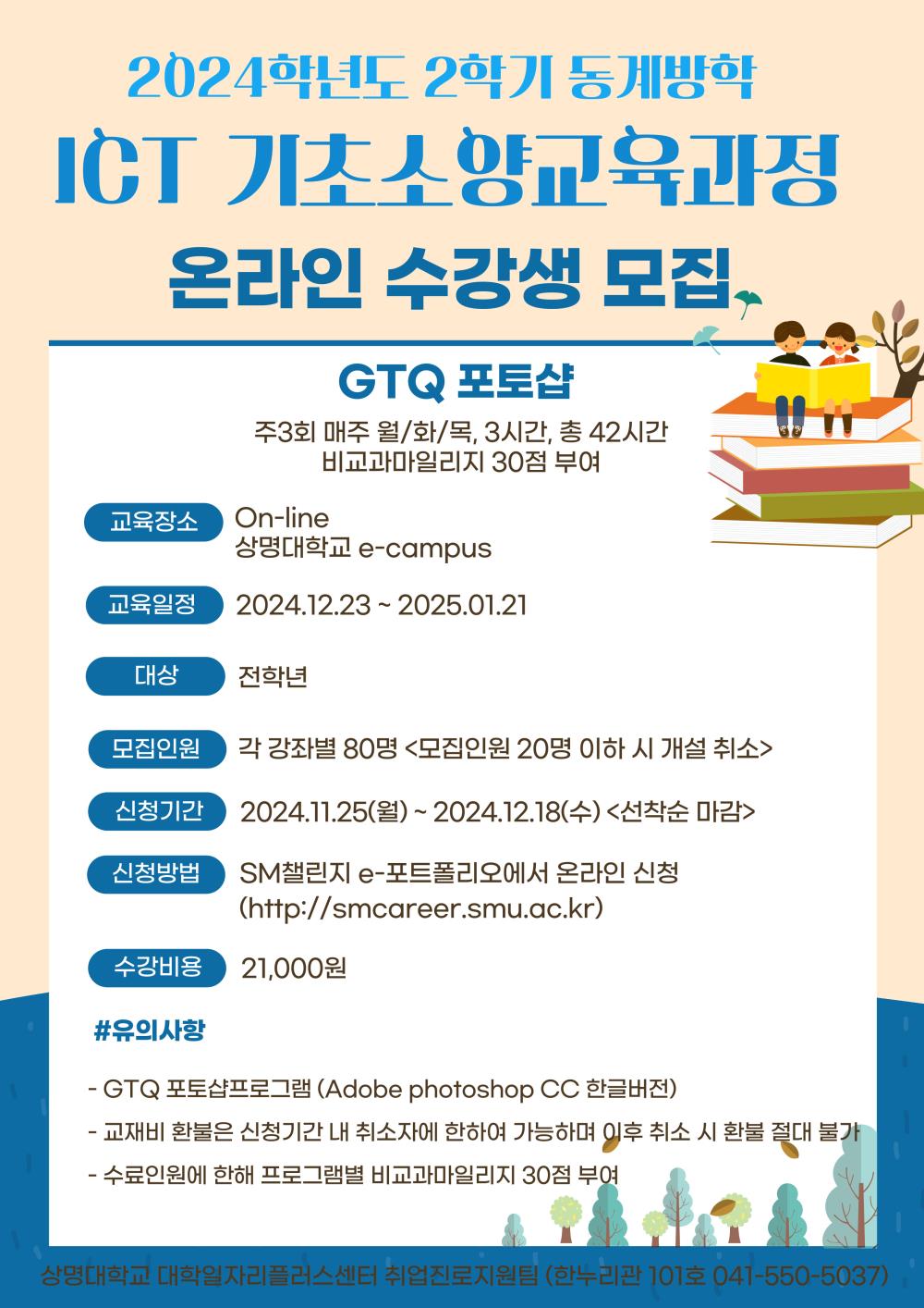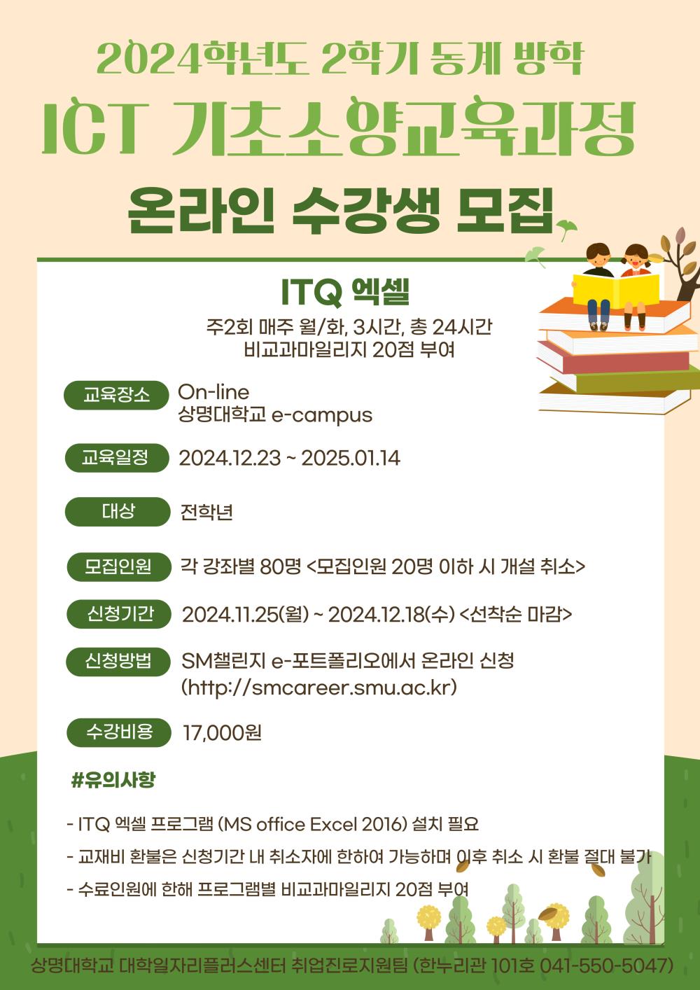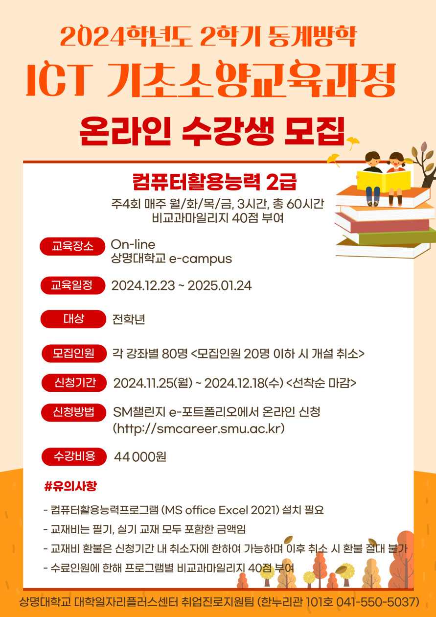 상명 [진로취업] [취업진로지원팀] 2024학년도 동계방학 ICT 기초소양교육 신청 안내 -