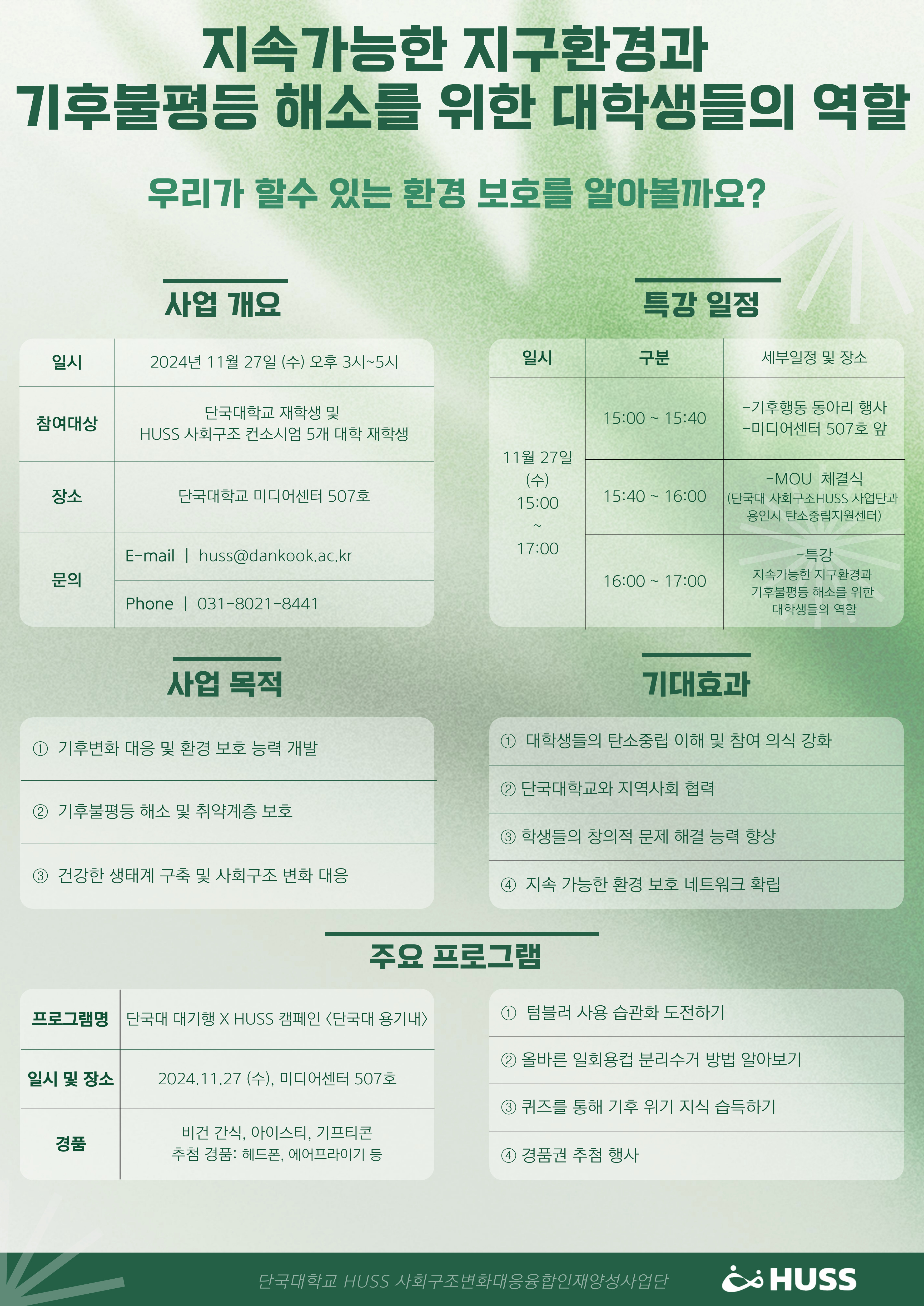 상명 [비교과] [HUSS 인문사회 융합인재양성사업단] 인문사회융합인재양성사업(HUSS) ‘지속가능한 지구환경과 기후불평등 해소를 위한 대학생들의 역할' 프로그램 안내 -